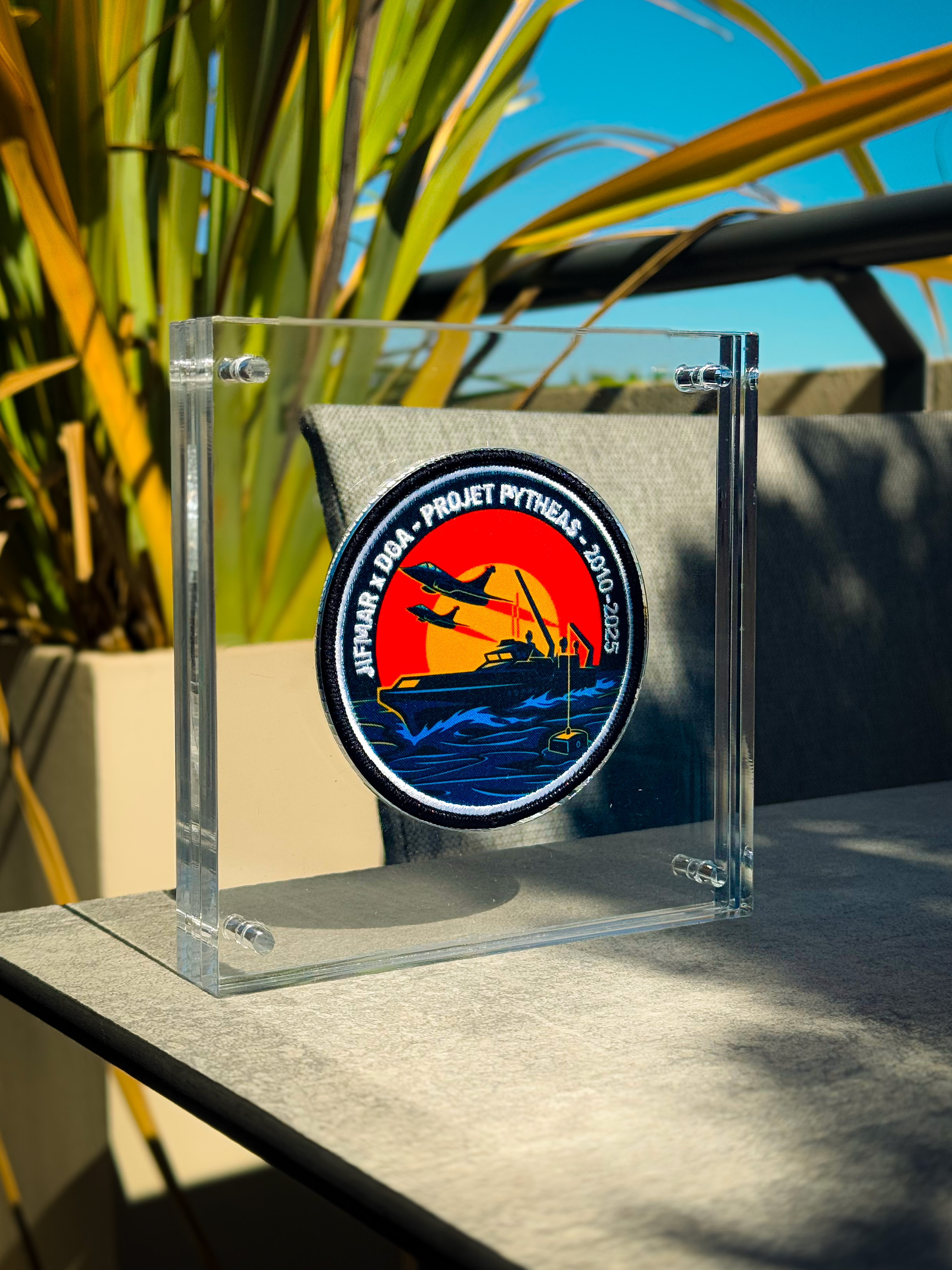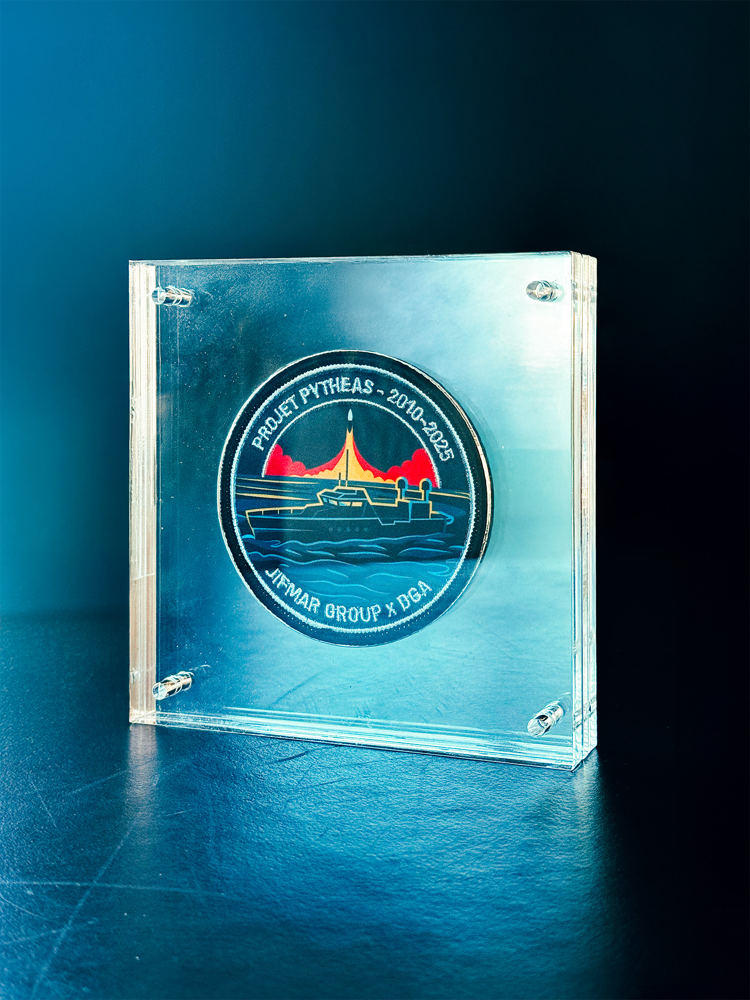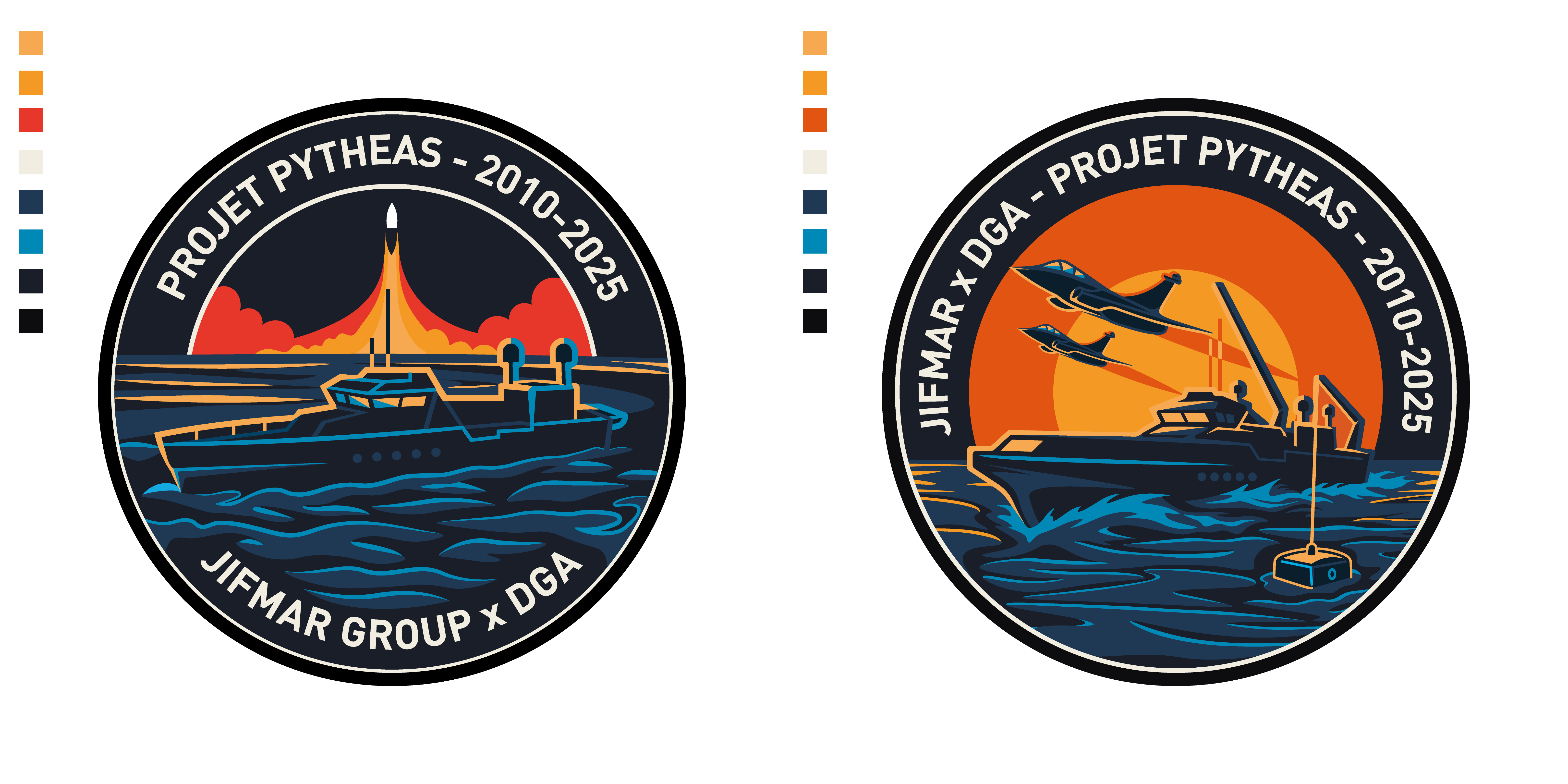 Ces deux patchs ont été conçus pour célébrer le projet Phyteas 2010–2025, en hommage aux 15 ans de collaboration et d’innovation maritime entre la Direction Générale de l’Armement (DGA) et JIFMAR Offshore Services. L’objectif était de créer des patchs symboliques, reconnaissables et esthétiques, reflétant à la fois l’identité industrielle, maritime et militaire de ce projet phare.